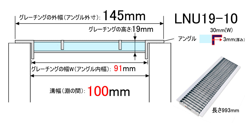 LNU19-10=100mm溝幅用になります、その他型式もお選び頂けます↓(販売金額・説明文・図面も連動で変わります):