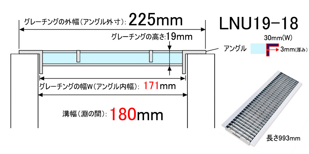 LNU19-18=180mm溝幅用になります、その他型式もお選び頂けます↓(販売金額・説明文・図面も連動で変わります):