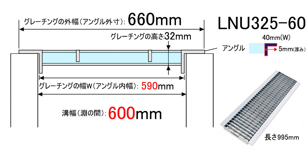 LNU325-60=600mm溝幅用になります、その他型式もお選び頂けます↓(販売金額・説明文・図面も連動で変わります)::